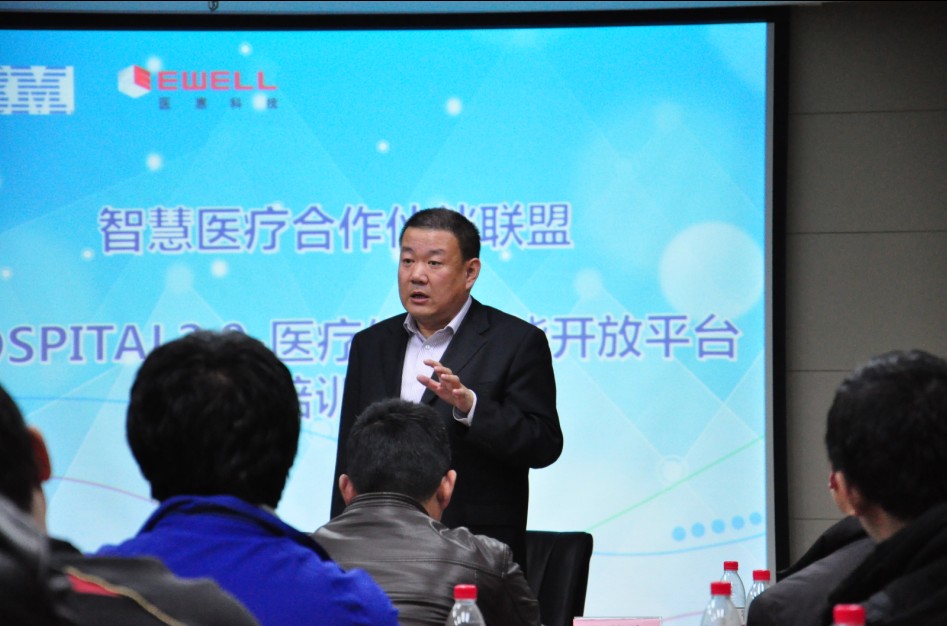 圖為IBM公司大中(zhong)華區(qu)醫療(liao)衛生和(he)生命(ming)科學總經(jing)理劉洪先(xian)生作HOSPITAL2.0平臺培訓演講